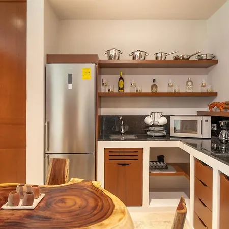 Nhoa Retreat In The Heart Of Aldea Zama别墅位于Zama区,这里设有配微波炉,咖啡壶/茶壶 和冰箱的设施齐全的厨房. 此场所共有2间卧室和2间浴室.